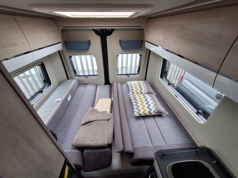 A two berth panel van conversion with rear sleeping area, central kitchen and bathroom and swivel seats in the cab. Other features include: awning, alloys, cab aircon, cruise control and more.Â