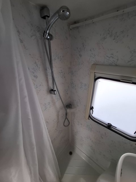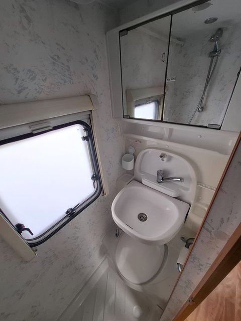 Awning. bike rack. kitchen with grill, hob, oven and sink. Casette toilet, sink and shower. Tv aerial. Loose-fit carpets and more.