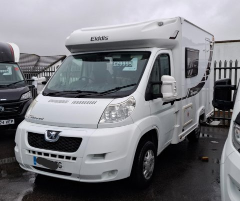A Peugeot Elddis Autoquest 115 two berth coachbuilt motorhome with bench seats, cab swivel seats and end kitchen.Â