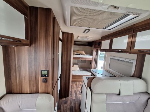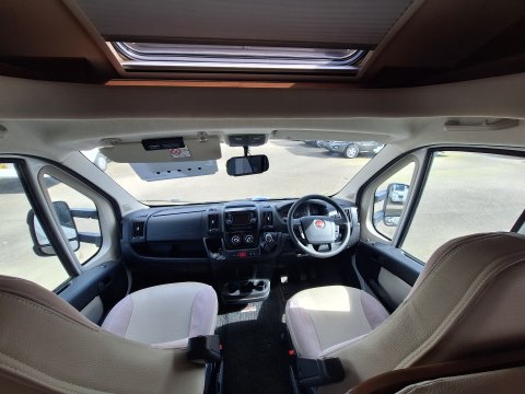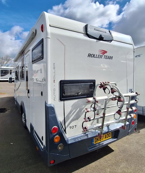 A Fiat based Rollerteam Autoroller 707 coachbuilt motorhome. A six berth with a large front lounging area and belted seats, drop-down bed and rear bunk beds with a garage. Bathroom with separate shower. A 3500KG unit that can be driven by anyone with a valid License and 7.3 Meters in length.