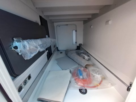 DAB radio (Apple Play, USB, AUX input) , Cab aircon and cruise control, cab blinds, swivel driver and passenger seats, rear forward facing belted seats.