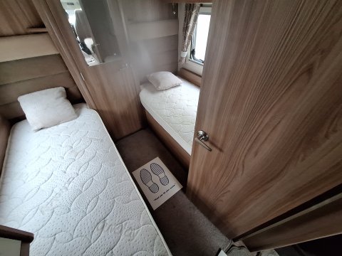 A four berth Fiat Swift Bessacarr 574 motorhome, under 8 meters and over 3500KG at 3850KG. This luxury coachbuilt has end washroom with cassette toilet and separate shower, two rear fixed single beds, a nice sized kitchen area with full facillities, a single bench with two forward facing 3-point belted seats and this area also converts to a double bed. Swivel captain seats. Plenty of useful features are also packed on board, such as solar, alloys, awning, rear roof mounted aircon, reversing camera, Alde wet heating and hot water, a TV, cab air con, cruise control, cab blinds and more...Â