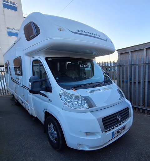 A 2012 Swift Sundance 630L, a 6 berth motorhome based on a 2.3 litre 130bhp Fiat engine and Fiat chassis.