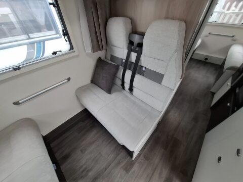 A Ford based Swift Voyager 475 5 berth coachbuilt motorhome with overcab bed, full dinette (Five 3-point belted seats total inc the cab and this area also makes up a single bed) and rear lounge (benches), that can convert to a double bed. Kitchen and washroom.